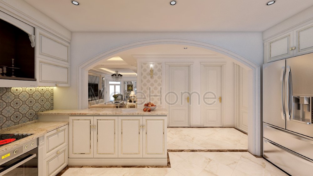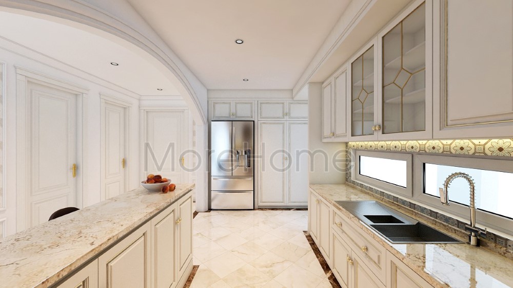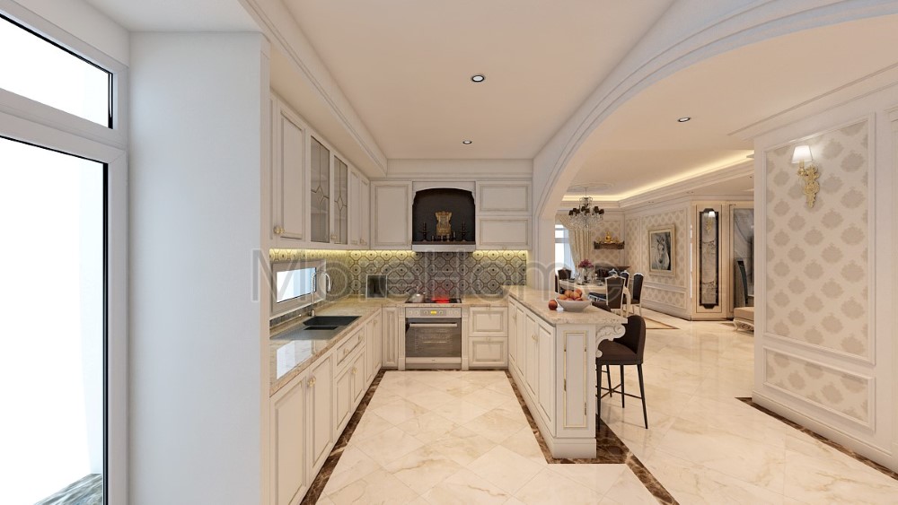 Tủ bếp gỗ tự nhiên hay được thiết kế theo phong cách tân cổ điển khiến cho không gian phòng bếp thêm sang trọng giúp bữa ăn trở nên ấm áp hơn, ngon miệng hơn, giúp gắn kết tình cảm các thành viên trong gia đình lại với nhau.