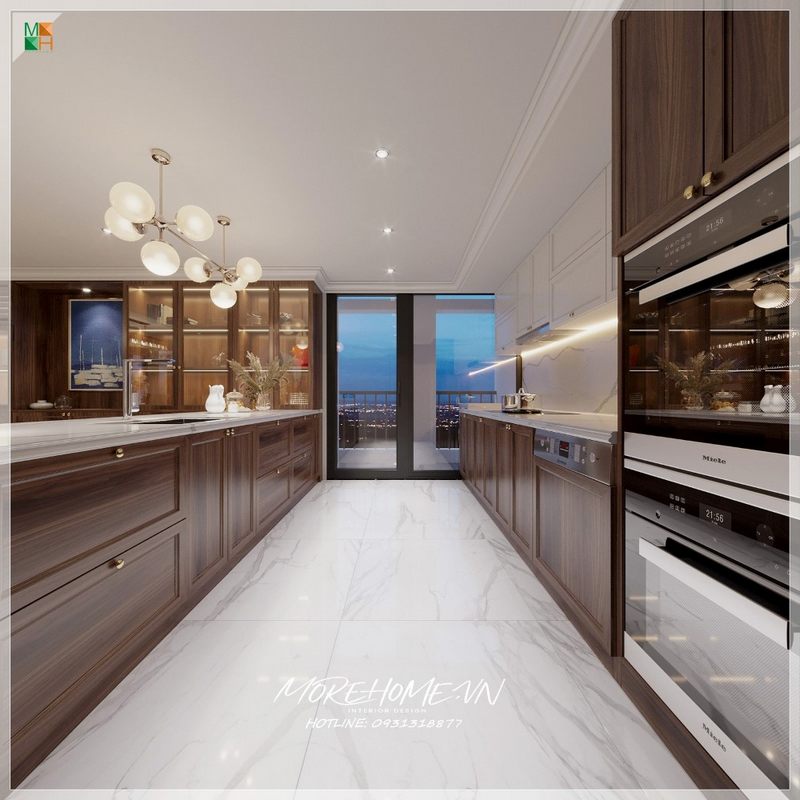 Thiết kế nội thất phòng bếp chung cư phong cách tân cổ điển sang trọng và đẳng cấp