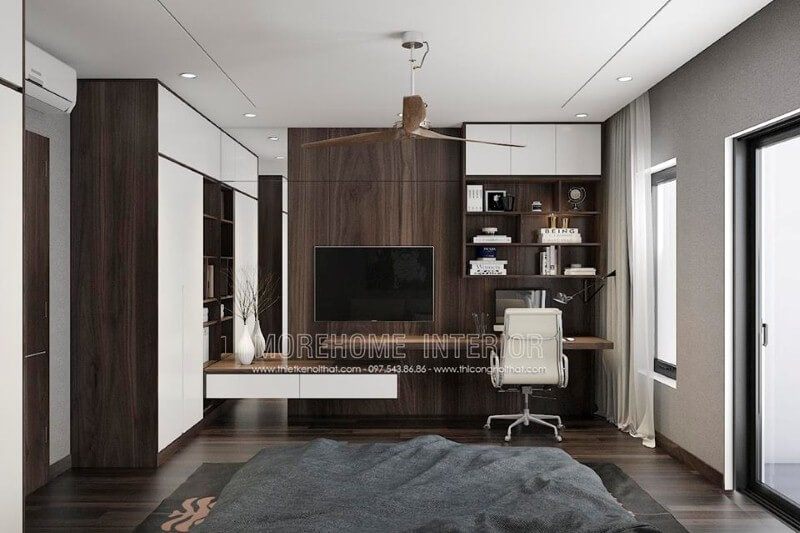 Thiết kế phòng ngủ nhà phố hiện đại,các chi tiết cầu kỳ được lược bỏ thay vào đó tập trung vào công năng sử dụng mang lại sự tiện nghi hơn cho gia chủ