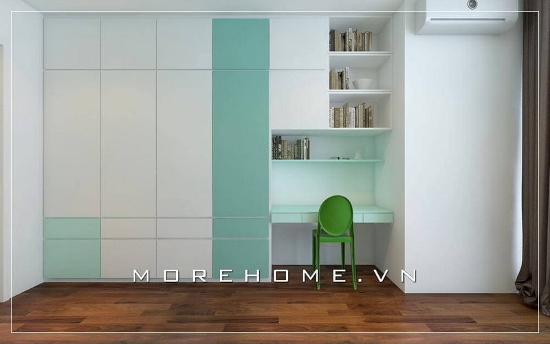 Thiết kế tủ áo hiện đại, đơn giản kết hợp với kệ sách, bàn học đem đến sự thoải mái, tiện nghi nhất