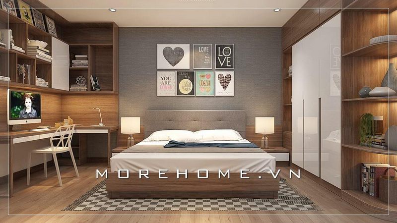 Tủ áo hiện đại kết hợp kệ tủ ti vi đầy trẻ trung phù hợp lựa chọn cho không gian phòng ngủ chung cư nhỏ