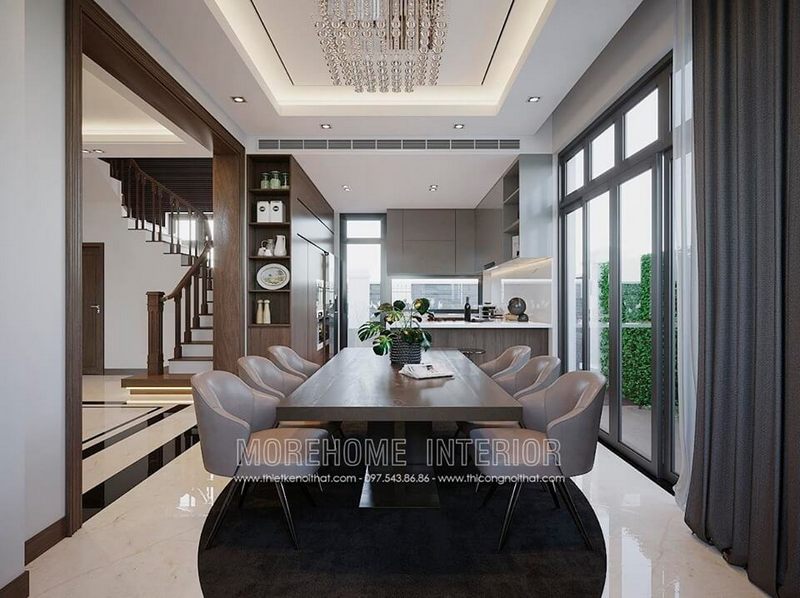 Không gian nội thất phòng ăn hiện đại bằng gỗ tự nhiên cao cấp mà sang trọng cho nhà biệt thự