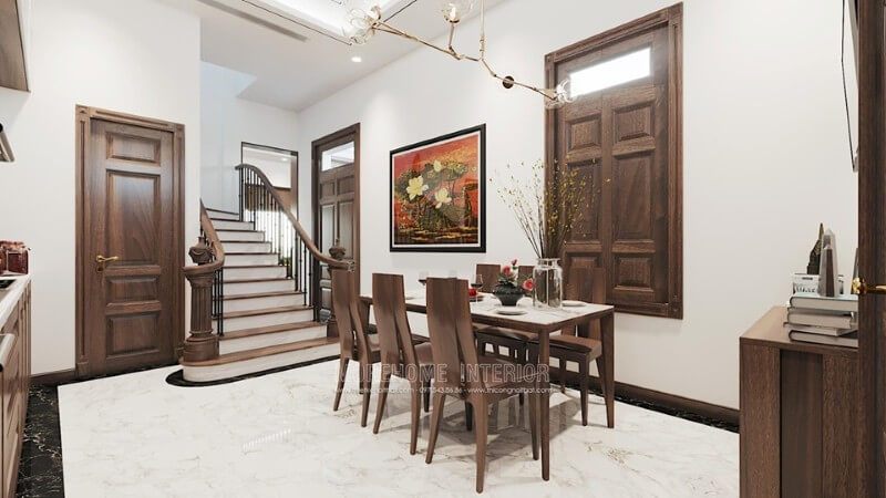 Biến hóa phòng ăn biệt thự thêm khác biệt với bức tranh treo tường phong cách á đông