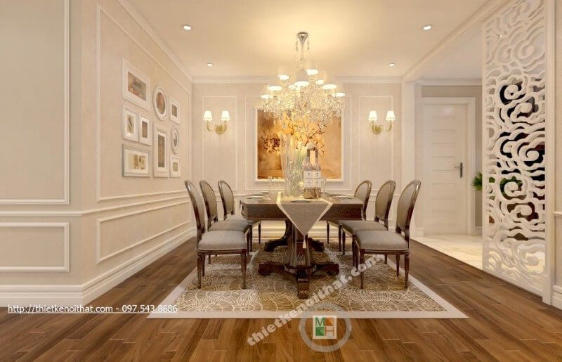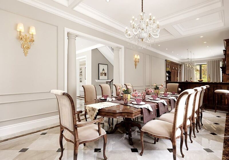 Mẫu bàn ăn tân cổ điển cho không gian phòng bếp biệt thự thêm sang trọng