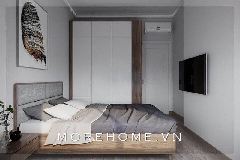 Tủ áo gỗ công nghiệp được thiết kế âm tường hiện đại tạo cho căn phòng thêm thông thoáng.