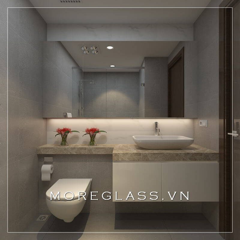 Đá ốp tường vân mây cao cấp khiến không gian phòng tắm trở nên sang trọng, sạch sẽ và tinh tế hơn.