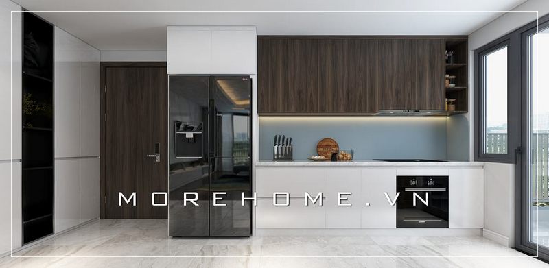 Để tối ưu hóa nguồn ánh sáng này, bạn có thể sử dụng cửa sổ lớn hoặc cửa kính kéo dài từ sàn đến trần. Bên cạnh đó, việc lựa chọn màu sắc tường và nội thất sáng màu cũng giúp phản chiếu ánh sáng, tạo nên không gian rộng rãi hơn cho phòng bếp nhỏ của bạn.