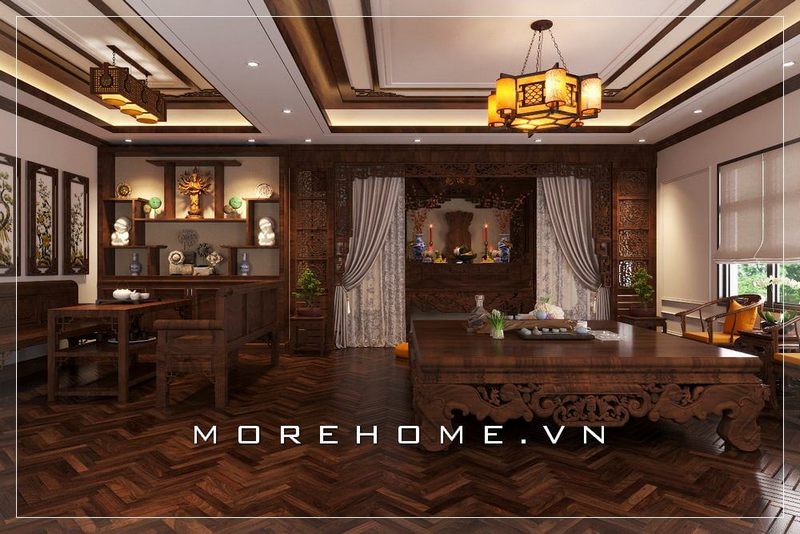 Sàn lát gỗ sẽ tạo ra một không gian phòng thờ đầy đủ tiện nghi và sang trọng hơn.